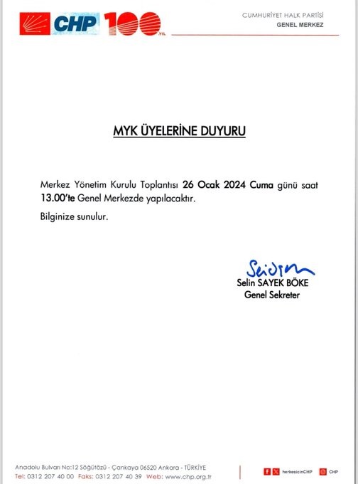 Siyaset Yayınlanma: 23 Ocak 2024 - 07:34 CHP MYK 26 Ocak 2024 Cuma günü toplanıyor CHP, 26 Ocak 2024 Cuma günü MYK toplantısı yapacak. Siyaset 23 Ocak 2024 - 07:34 Yorumlar 1 dk okunma süresi Dinle Yazdır A Büyüt A Küçült Yorumlar Cumhuriyet Halk Partisi Genel Başkanı Özgür Özel başkanlığında 26 Ocak 2024 Cuma günü Saat:13.00'da chp Genel Merkezinde myk toplanacak.Toplantı, CHP Genel Sekreteri Selin Sayek Böke imzası ile duyuruldu; # chp# myk# toplantı YORUMLAR FACEBOOK adlı kullanıcıya cevap x Gönder İlginizi Çekebilir Gökhan Günaydın: CHP anayasa meselesine kapalı! Özgür Özel: Ekrem İmamoğlu, masumdur. Çiftçilere Yapılmayan Ödemeler Meclis Gündeminde DEM Parti'den Çarpıcı 'Öcalan' Çıkışı! 'Bu Manifestonun Tek Muhatabı PKK Değil' Son Haberler Ahmet Akın Safını Belli Etti Perşembe’de CHP’ye Yeni Belde Başkanı Zonguldak İlkokulu 1/C Sınıfı’ndan Anlamlı 29 Ekim Kutlaması Zonguldak'ta Zehirli Bitki Paniği: Akademi Kafe Bahçesinde Yabani Mürekkep... CHP Kozlu’da Delege Seçimlerinde İlk Gün Tamamlandı Resmi Gazete'de bugün (23 Ocak 2024 Salı) Resmi Gazete'de bugün (23 Ocak 2024 Salı)