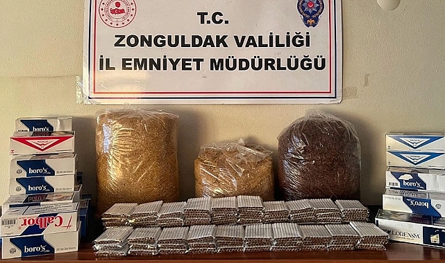 Zonguldak İl Emniyet Müdürlüğü tarafından Ereğli ilçesinde yapılan operasyonda 7.860 adet doldurulmuş makaron ve 15 kilo kıyılmış tütün ele gerçekleştirdi.