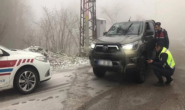 Zonguldak İl Jandarma Komutanlığı Trafik Jandarması Timlerince; 01 Aralık 2023 – 01 Nisan 2024 tarih aralığında yük ve yolcu taşıyan ticari araçlarda kış lastiği kullanma zorunluluğu kapsamında 12.01.2024 tarihinde kış lastiği denetimi icra edildi.