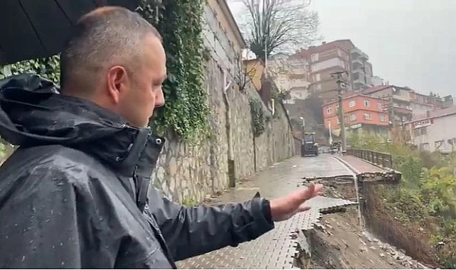 Amelebirliği hastanesinin yolunun heyelan nedeniyle çökmesinin ardından Zonguldak Belediye Başkanı Ömer Selim Alan olay yerinde inceleme yaptı.