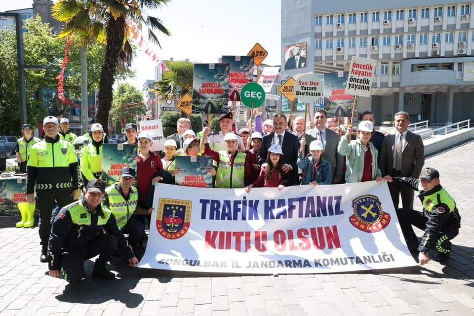 Zonguldak Valisi Osman Hacıbektaşoğlu himayelerinde Trafik Haftası kutlama etkinlikleri kapsamında Valilik Hizmet Binası önündeki yaya geçidinde, yayaların güvenliği ve trafik kurallarına uyulması konusunda farkındalık oluşturulması hedeflenen ''Yayalar Kırmızı Çizgimiz'' etkinliği düzenlendi.