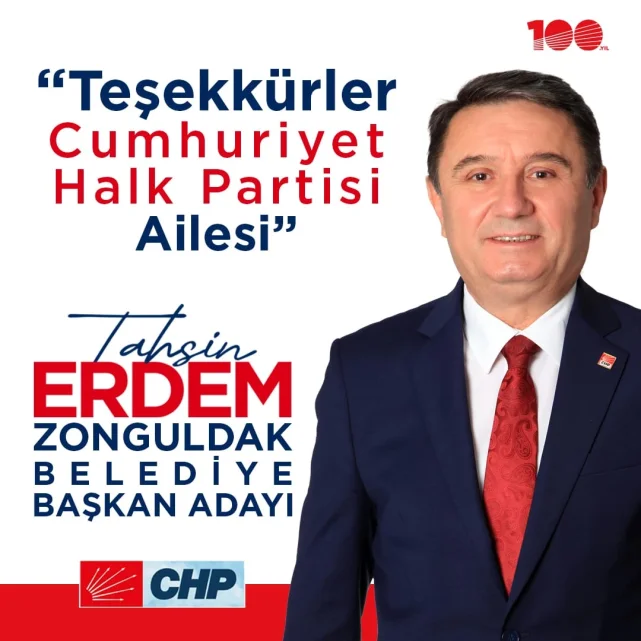 Geçtiğimiz haftasonu yapılan önseçimden birinci çıkan ve dün chp Parti Meclisi tarafından CHP Zonguldak Belediye Başkan adayı olarak açıklanan Tahsin Erdem: “Kökleri Cumhuriyete kadar uzanan Gazi Mustafa Kemal Atatürk’ün bizlere emaneti Cumhuriyet Halk Partisi üyelerinin teveccühü, halkımızın desteği ve Genel Merkezimizin onayı ile bu onurlu göreve layık görülmenin kıvancını yaşıyorum.Ön seçim sürecinde yaşanan tatlı rekabeti geride bırakarak kalan 81 günde gecemizi gündüzümüze katarak zonguldak Belediyesini yeniden Cumhuriyet Halk Partisine kazandıracağımızdan kimsenin şüphesi olmasın. Tüm kırgınlıkları arkamızda bırakarak 31 Mart Pazar akşamı Türkiye haritasında Zonguldak’ı kırmızıya boyayıp, Gazipaşa Caddesinde bu haklı gururu yaşayacağımız ana kadar hep birlikte çok çalışacağız.Başta Genel Başkanımız Sayın Özgür Özel olmak üzere, Genel Başkan Yardımcımız Sayın Deniz Yavuzyılmaz’a, MYK ve PM Üyelerimize, bölge Milletvekilimiz Sayın Eylem Ertuğrul’a, Zonguldak İl ve Merkez İlçe başkanlarımıza ve yönetim kurullarına, cefakar üyelerimize ve bu süreçte bizi yüreklendiren Zonguldaklı hemşerilerimize şükranlarımı sunarım" dedi.
